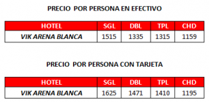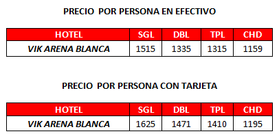 • 04 noches de alojamiento en hotel VIK HOTEL ARENA BLANCA