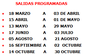 - Los horarios y días de los Tours y Excursiones se confirmarán directamente al pasajero al llegar a cada destino.